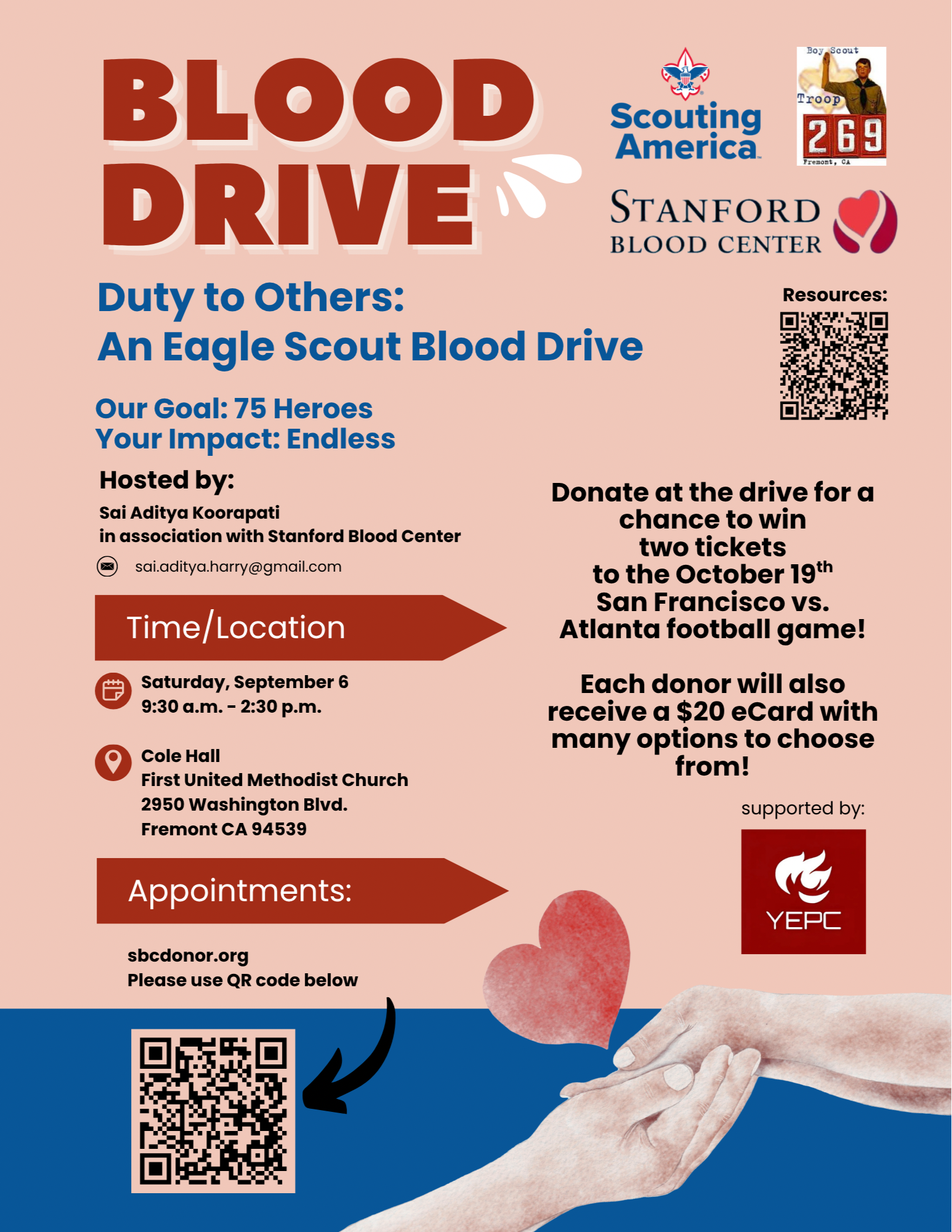 On September 6, 2025, YEPC teamed up with the Stanford Blood Center and Boy Scout Troop 269 for a successful Blood Drive that was also an Eagle Scout project led by Aditya. The event united YEPC members and Troop 269 scouts to support a close friend, drawing a robust crowd of donors and showcasing powerful community spirit. A standout achievement was 30 first-time donors—a significant milestone! First-time donors received $20 eCards, and all participants had a chance to win football game tickets. This inspiring initiative reflected service, generosity, and unwavering community unity, with our youth driving meaningful change and delivering hope and healing to local patients and families.